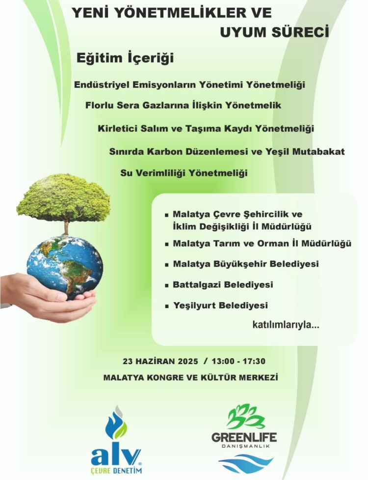 ALV Çevre Denetim, 23 Haziran'da "Yeni Yönetmelikler ve Uyum Süreci Bilgilendirme Toplantısı" düzenleyecek. Malatya'daki çevre ve tarım müdürlükleri ile uzmanlar sunum yapacak. Amaç, sektör iş birliğini artırmak ve çevre politikalarını geliştirmek.