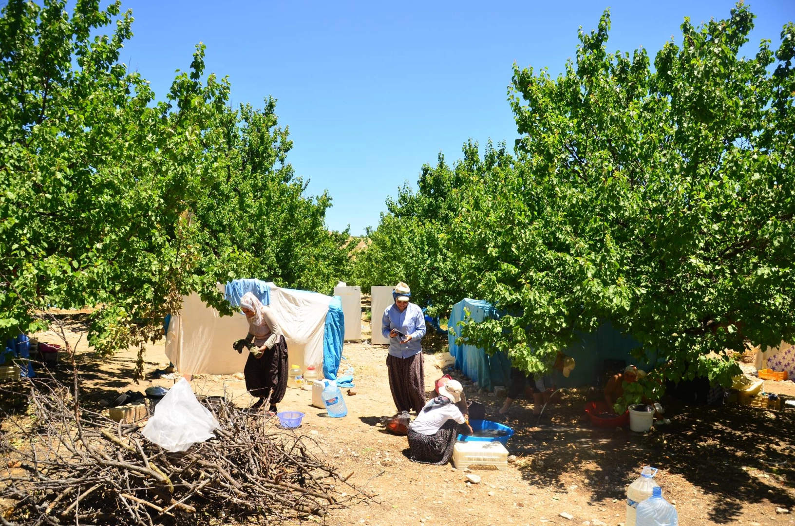 Elazığ'ın Baskil ilçesinde Diyarbakır Ergani'den gelen aileler kayısı hasadında çalışıyor. İşçilerin sıcak hava ve zor şartlarda günlük 670 lira karşılığında kayısıları silkeleyerek toplayıp islime veriyor. Bu arada hasad sırasındaki maliyetleri gözönüne alan üreticiler ise kayısılarını ya dalından satıyor ya da yarı yarıya ortağa veriyor. Kayısı bahçelerinde hummalı bir çalışma göze çarpıyor.