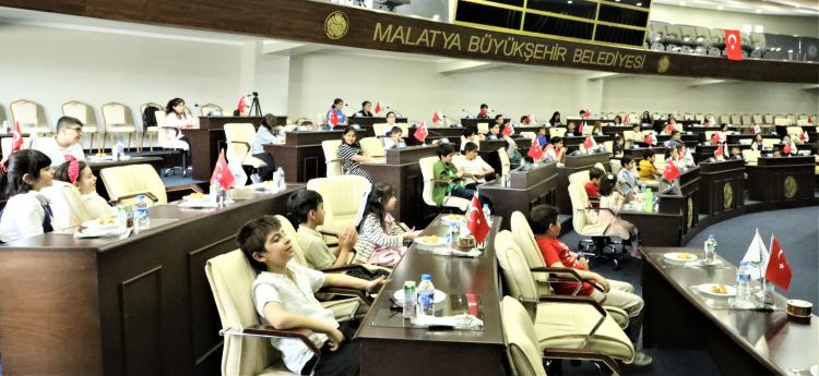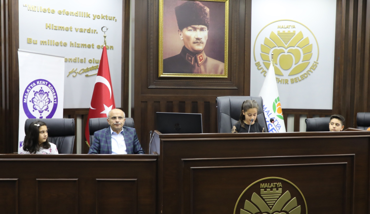 Malatya Kent Konseyi Çocuk Meclisi 23 Nisan Ulusal Egemenlik ve Çocuk Bayramı’nı kutlamak için Malatya Büyükşehir Belediye Başkanı Sami Er ile belediye meclis salonunda bir araya geldiler.