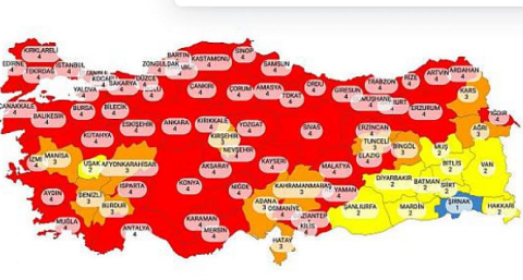 - Çok yüksek riskli grubu temsil eden kırmızı kategorideki iller nüfusumuzun yüzde 80'ini temsil eden 58 şehre ulaşmıştır.