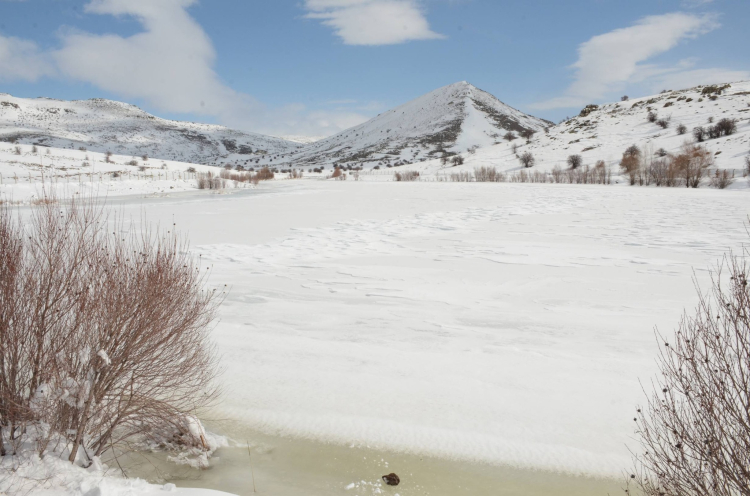 Hekimhan ilçesine bağlı Basak mahallesinde bulunan Karaboğaz Göleti buz tuttu.