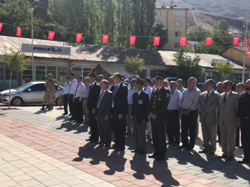 Kaymakam Mehmet Erdem burada yaptığı konuşmada “Başta Gazi Mustafa Kemal Atatürk ve Kahraman Silah Arkadaşları olmak üzere, bağımsız ve güçlü bir devlet çatısı altında yaşamayı borçlu olduğumuz, kanlarını ve canlarını üzerinde yaşadığımız topraklara katık eden Aziz Şehitlerimizi ve ebediyete irtihal eden Şanlı Gazilerimizi bir kez daha rahmet ve minnet duygularımızla yâd ediyor, Büyük Zafer’in mimarlarına sonsuz şükranlarımızı sunuyoruz” ifadelerine yer verdi.