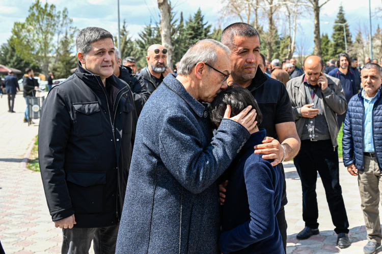 Cenaze törenine katılan Vali Seddar Yavuz, eşini kaybeden Polis memuru Hacı Hasan Karagülle ve oğlunu teselli ederek başsağlığı diledi.