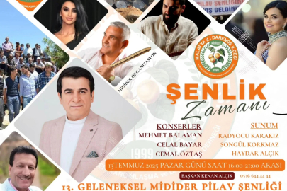 13. Geleneksel Darende İlçesi ve Çevre Köyleri Yardımlaşma ve Dayanışma Derneği (MİDİDER) Pilav Şenliği programı belli oldu. Darende Atma Köylerinin Yıkılğan mevkiinde yapılacak etkinlikte Mehmet Balaman, Cemal Öztaş ve Celal Bayar sahne alacak.