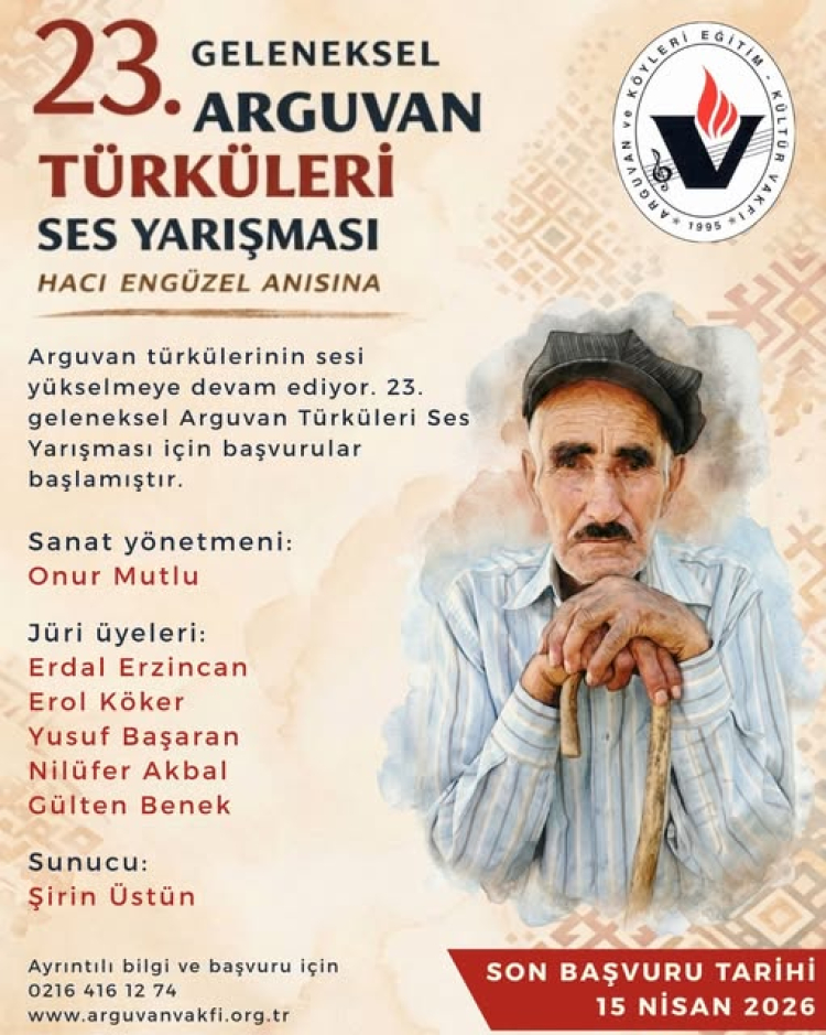 3 Mayıs’ta İstanbul'da İnal Aydınoğlu Kültür Merkezi’nde gerçekleştirecek 23. Geleneksel Arguvan Türküleri Ses Yarışması için başvurular başladı. Arguvan ve Köyleri Eğitim Kültür Vakfından yapılan açıklamada başvurular 15 Nisan'a kadar devam edecek.