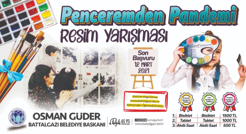 Yeni tip Koronavirüs (Covid-19) sürecinde ilçedeki binlerce vatandaşa destek veren Battalgazi Belediyesi, salgın sürecinde insanların değişen yaşam tarzlarını, alışkanlıklarını ve iletişim biçimlerini görsel sanatlar yoluyla ifade edebileceği “Penceremden Pandemi” konulu resim yarışması düzenlenecek.