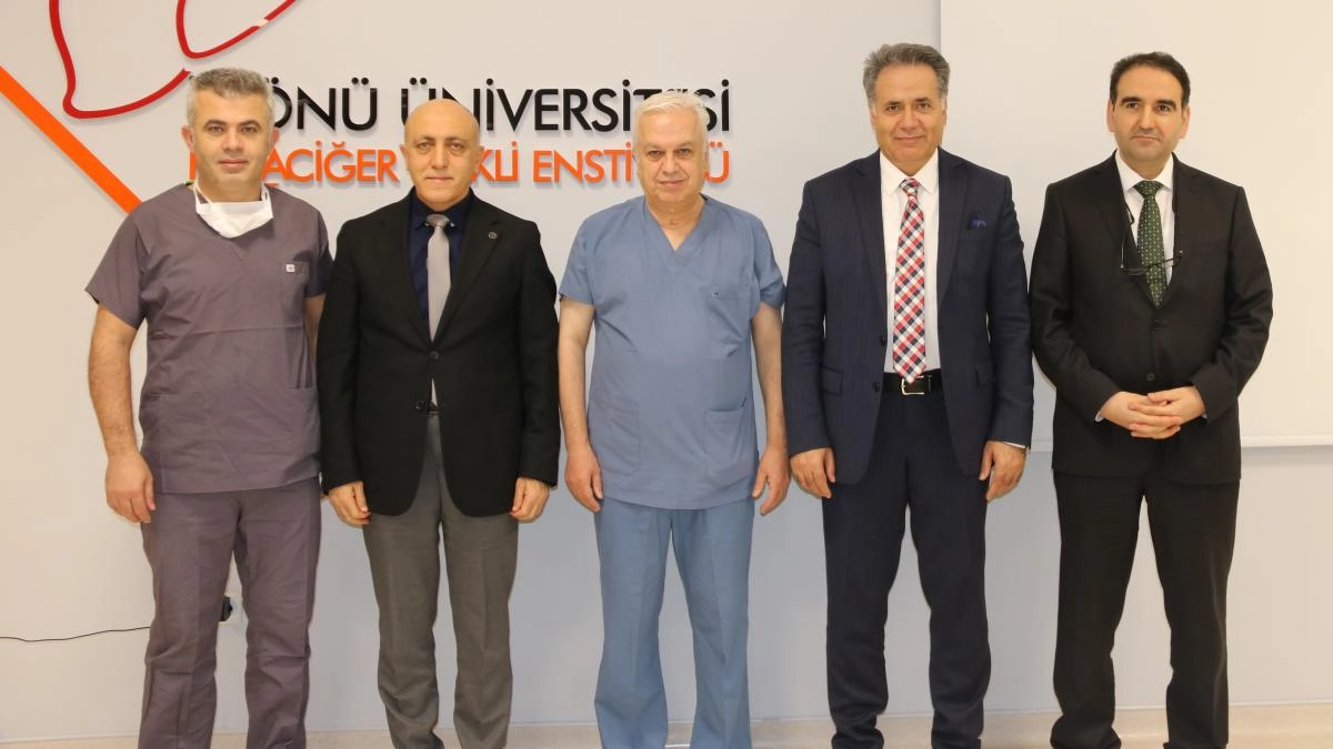 Karaciğer Nakli Enstitüsü’nde düzenlenen programa, İnönü Üniversitesi Rektörü Prof. Dr. Nusret Akpolat’ın yanı sıra Tıp Fakültesi Dekanı Prof. Dr. Mehmet Aslan, TÖTM Başhekimi Doç. Dr. Erol Karaaslan, Karaciğer Nakli Enstitüsü’nde görev yapan doktorlar katılım sağladı.
