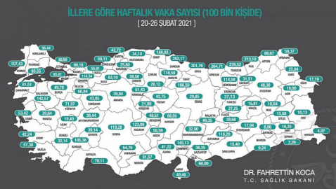 Sağlık Bakanlığının haftalık olarak yayınladığı vaka sayısı haritasında İlk hafta 100 binde 40, ikinci hafta 44 ve üçünçü haftada 100 binde 46 vakaya ulaşan Malatya’nın seçilmiş yöneticiler tarafından yüksek riskli iller arasından orta riskli iller arasında yer alması kafaları karıştırdı.