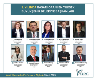 ORC Araştırma tarafından "1. Yılında Başarı Oranı En Yüksek Büyükşehir Belediye Başkanları" anketi 15-25 Mart tarihlerinde 30 Büyükşehir'de 16 Bin 350 kişi ile Çatı yöntemiyle yapıldı.