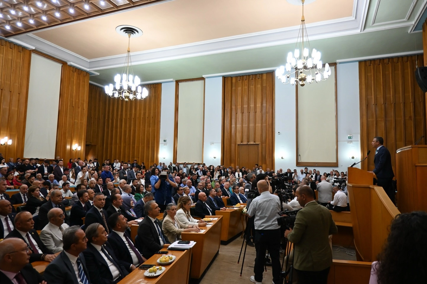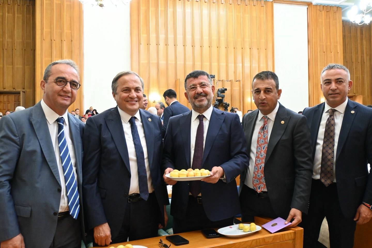 CHP Genel Başkanı Özgür Özel'in konuştuğu CHP Meclis Gurubunda Malatya kayısısı ikramı yapıldı.