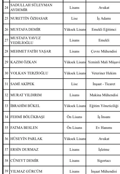 Yeni Yol Partisi'nin 39 kişilik kurucular kuruluna Saadet Partisi'nin verdiği 13 kişilik listeden girdiği gelen bilgiler arasında
