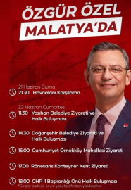 CHP Genel Başkanı Özgür Özel’in 22 Haziran Cumartesi günü Malatya programı şöyle: