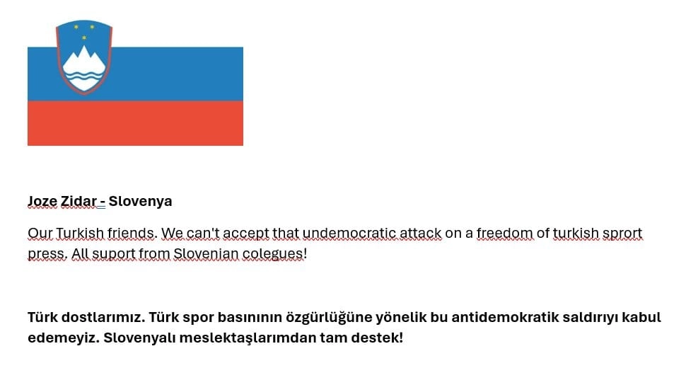 "Avrupa'daki spor gazetecileri derneklerini temsil eden Yönetim Kurulu adına, Oğuz Tongsir’in Türkiye Spor Yazarları Derneği (TSYD) Başkanlığı görevinden alınmasını şiddetle kınıyoruz. Bu karar, medya özgürlüğüne ve sporun bağımsızlığına doğrudan bir müdahaledir."