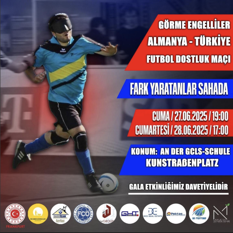 Almanya'nın Ober-Ramstadt kentinde 27-28 Haziran'da Türkiye ve Almanya Görme Engelliler Milli Takımları arasında dostluk maçı düzenlenecek. Malatyalı Alican Pektaş'ın öncülüğünde yapılan etkinlik, dayanışmayı ve farkındalığı artırmayı amaçlıyor.