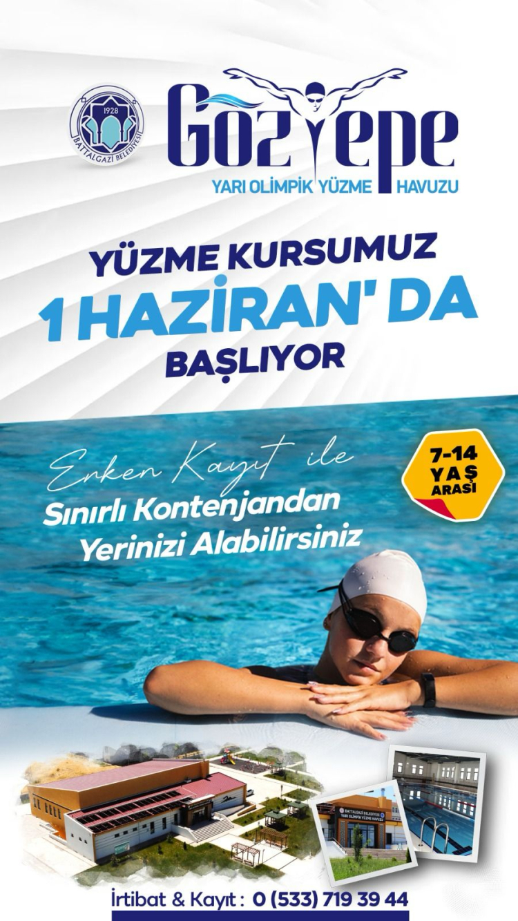 Battalgazi Belediyesi Göztepe Yarı Olimpik Yüzme Havuzu’nda 7-14 yaş arası çocuklara yönelik yüzme kursları 1 Haziran’da başlıyor. Erken kayıt avantajıyla sınırlı kontenjandan yararlanmak isteyenler için başvurular devam ediyor.