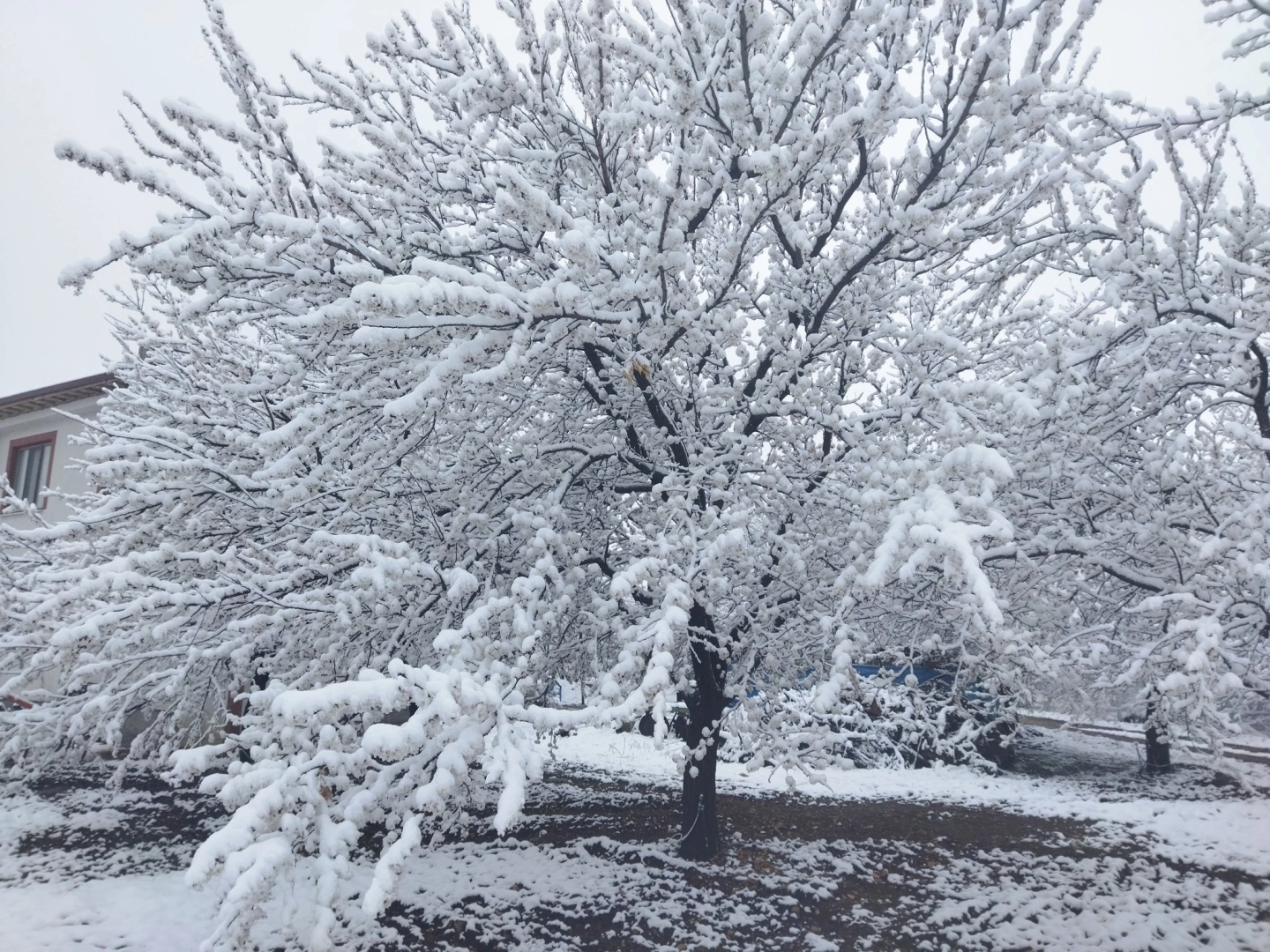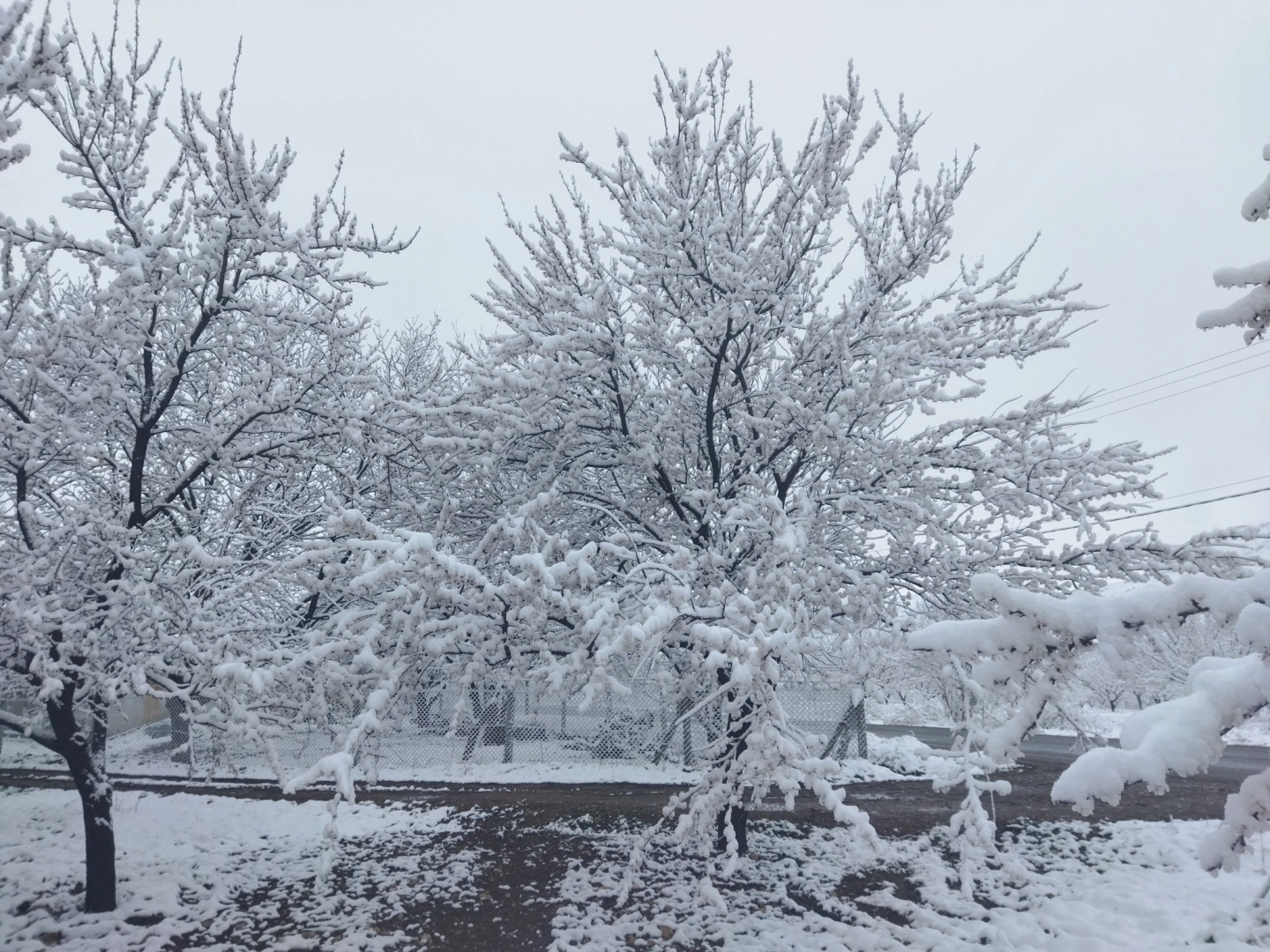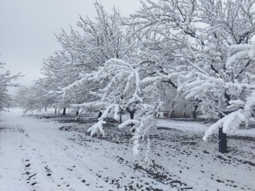 Kar altındaki kayısı ağaçları görülühyor: