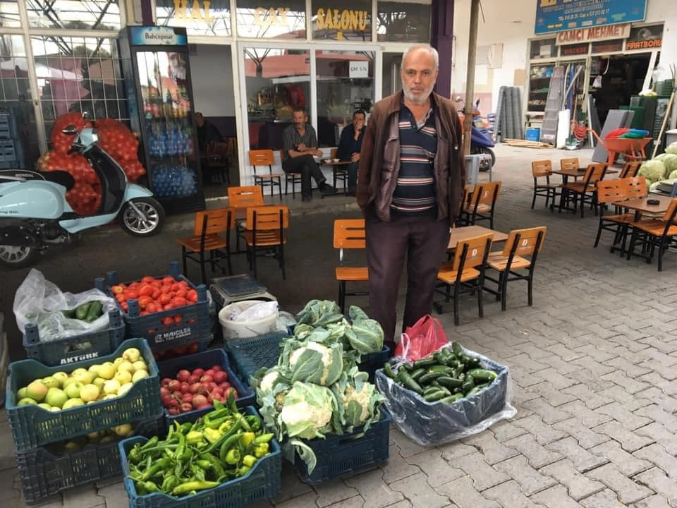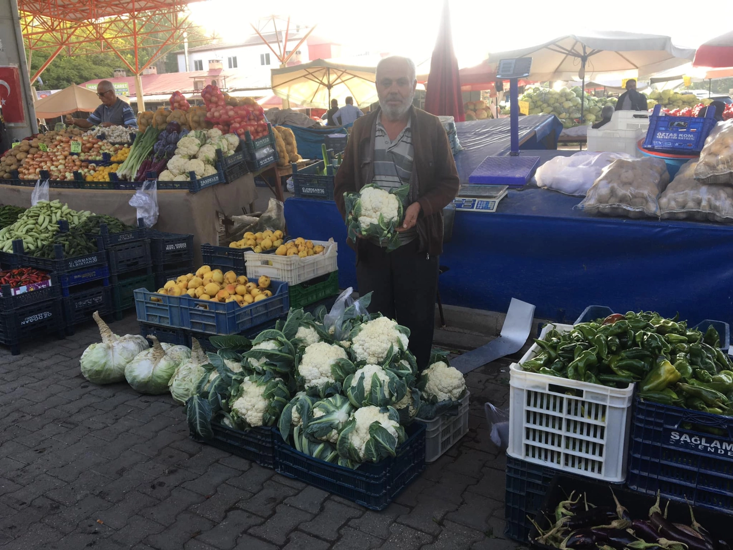 Karnabaharları üretmek İsteyenlere yardımcı olabileceğini ve tecrübelerini paylaşabileceğinide söyleyen Dursun Tekin karnabaharları Darende pazarında satıyor.