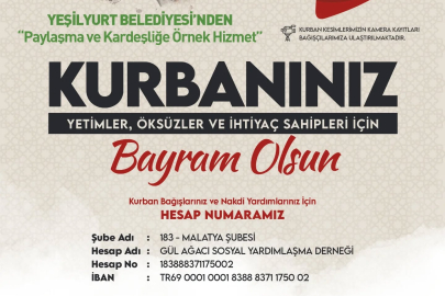 Kurban etlerinin dağıtımı, Yeşilyurt Belediyesi Sosyal Yardımlaşma Müdürlüğüne kayıtlı yetim, öksüz ve ihtiyaç sahibi ailelerinin listesi doğrultusunda yapılacak ve sürecin her aşaması şeffaf bir şekilde kamuoyuyla paylaşılacak. Kurbanlar, Yeşilyurt Belediyesi yetkilileri ve veteriner hekim denetiminde satın alınacak olup, kesimleri önceden anlaşma yapılan et kombinalarında veteriner hekim kontrolünde, hijyenik koşullarda, İslami usullere uygun şekilde gerçekleşecek. Kurban kesimlerinin kamera kayıtları ise bağışçılara ulaştırılacak.