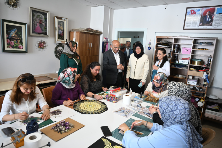 Malatya Büyükşehir Belediyesi’ne bağlı farklı noktalarda, 36 farklı dalda meslek edindirme, kültür-sanat ve el becerileri alanlarında eğitim verilen yerlerden biri olan Tecde Eğitim Merkezi'ni ziyaret eden Malatya Büyükşehir Belediye Başkanı Sami Er, kursiyerle sohbet ederek, kursiyerlerin ürettikleri ‘El Emeği-Göz Nuru’ ürünlerinin paha biçilmez değerde olduğunu vurguladı. Ziyaret sırasında tasvir yapımı, rölyef, mum oymacılığı, ev tekstili, halı dokuma, transfer baskı ve Kur'an-ı Kerim gibi kurslarını tek tek gezerek yapılan çalışmaları eşi Sevgi Er Hanımefendi ile birlikte inceleyen Başkan Er, kursiyerlerin Anneler Günü'nü de kutladı.