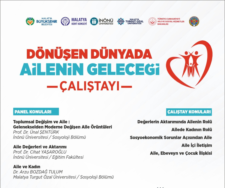 Malatya Kent Konseyi öncülüğünde, Malatya Büyükşehir Belediyesi, İnönü Üniversitesi, Malatya Turgut Özal Üniversitesi, Aile ve Sosyal Politikalar İl Müdürlüğü ile Toplum Destekli Polislik Büro Amirliği iş birliğiyle düzenlenen “Dönüşen Dünyada Ailenin Geleceği” çalıştayının sonuç raporu yayımlandı.