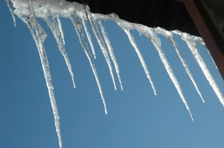 Saçaklardan, oluklardan sarkan sivri buz kütlesi
