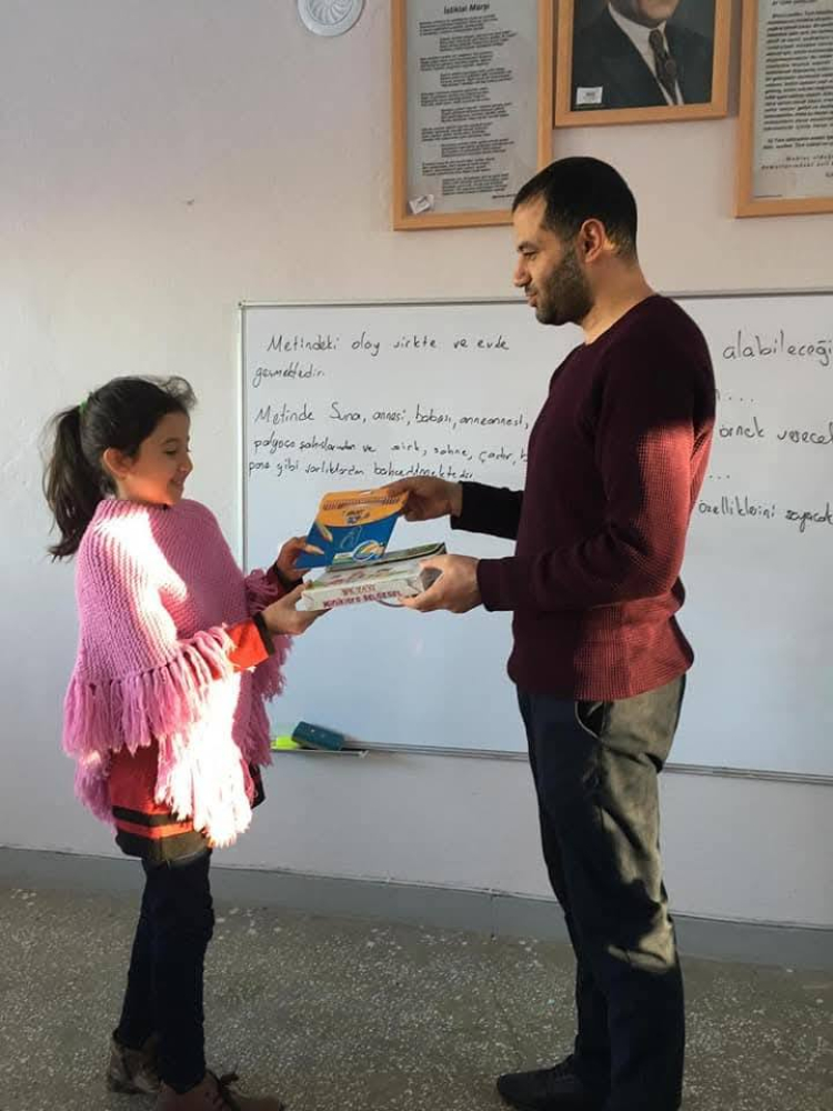 Ben gökdereni merak ettiğim için yol boyunca şaşkınlık ve hayranlıkla sağa,sola bakıyorum müdür bey ve bir öğretmen, okul bahçesinde 23 nisana hazırlık provaları yapıyorlardı. kitapları verdik okulu gezdik böyle bakımlı, rengarenk ,tertemiz, Ankaradayım gördüğüm devlet okulları ile kıyaslanamayacak kadar bakımlı, temiz ve araç gereçler rengarenk, Şaşırdım,fakat memleketimde bir küçük köyde, böyle bir okul olması beni gururlandırdı.müdür beyi ve öğretmenimizi tebrik ettim.öğrencilermi ? Onlar pırıl pırıl tertip düzen temizlik, canlarım kitapları dağıtırken o yüzlerindeki gülümseme , gözlerindeki ışıltı görülmeye değerdi.iyiki kitap kampanyası yaptım dedim.Rabbim böyle bir hayırlı hizmeti yapmaya vesile kıldı.